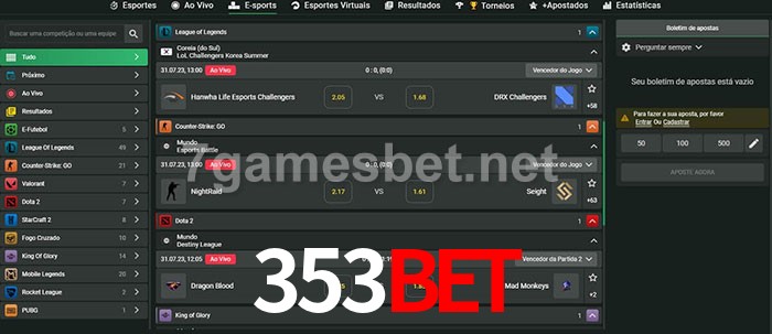 O 353Bet oferece uma grande seleção de opções de apostas em e-sports com probabilidades competitivas